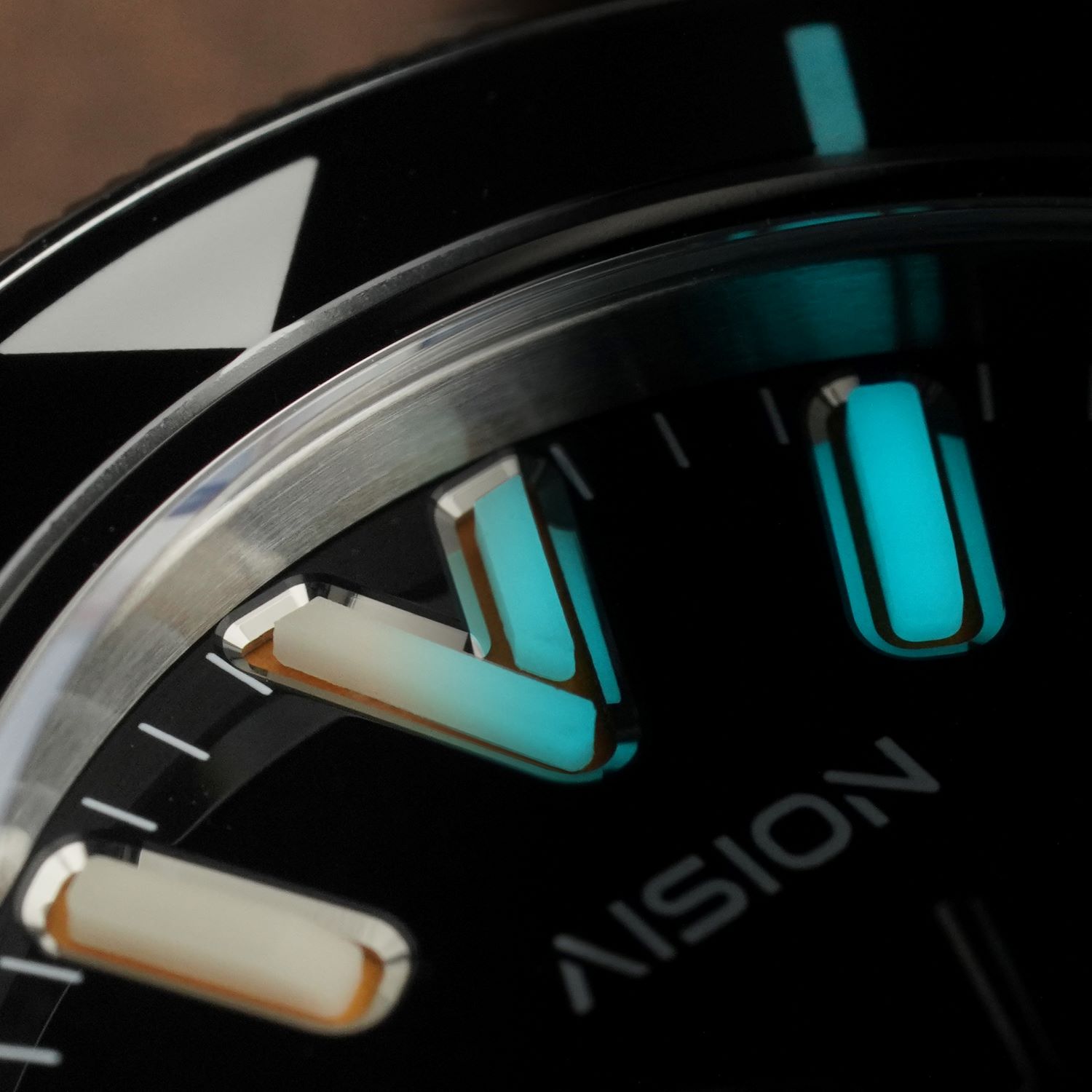 - Swiss Super-LumiNova® BGW9 (Grade A) lume on hands and dial
