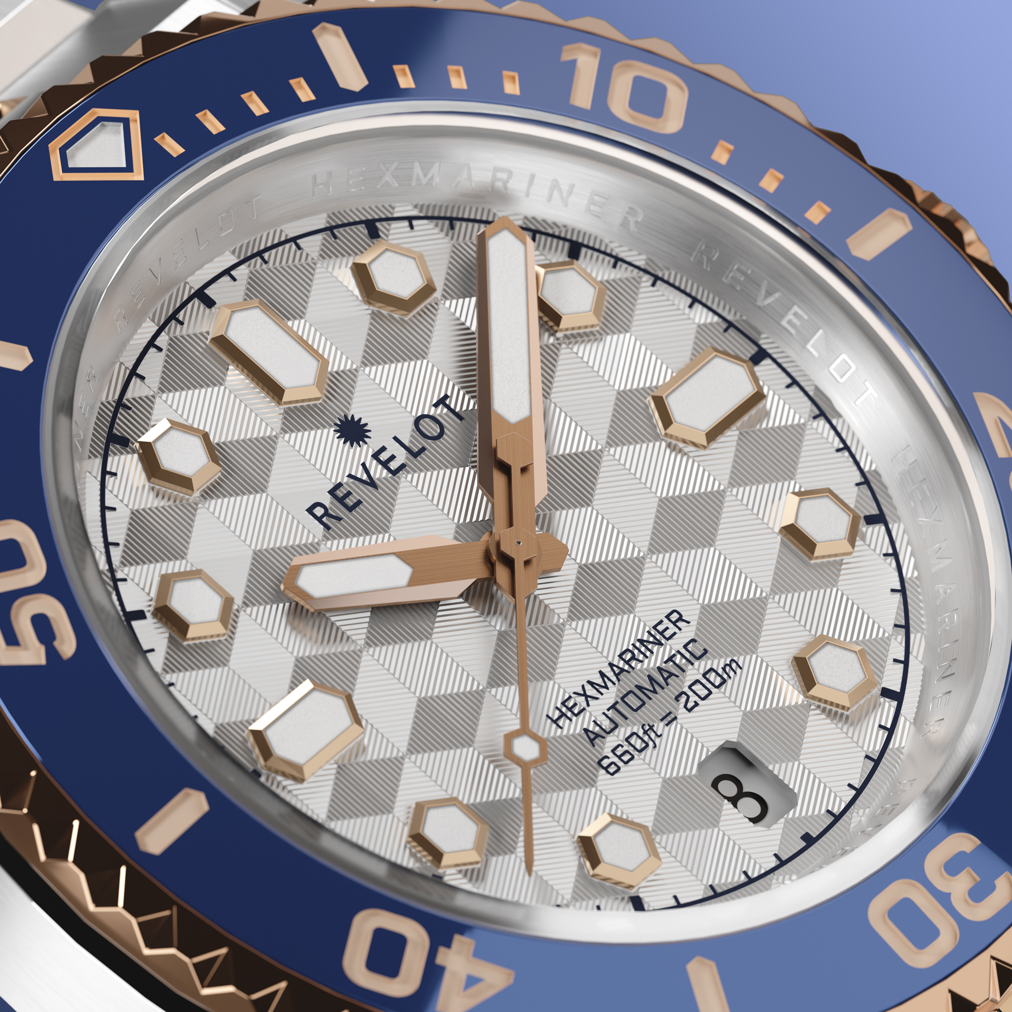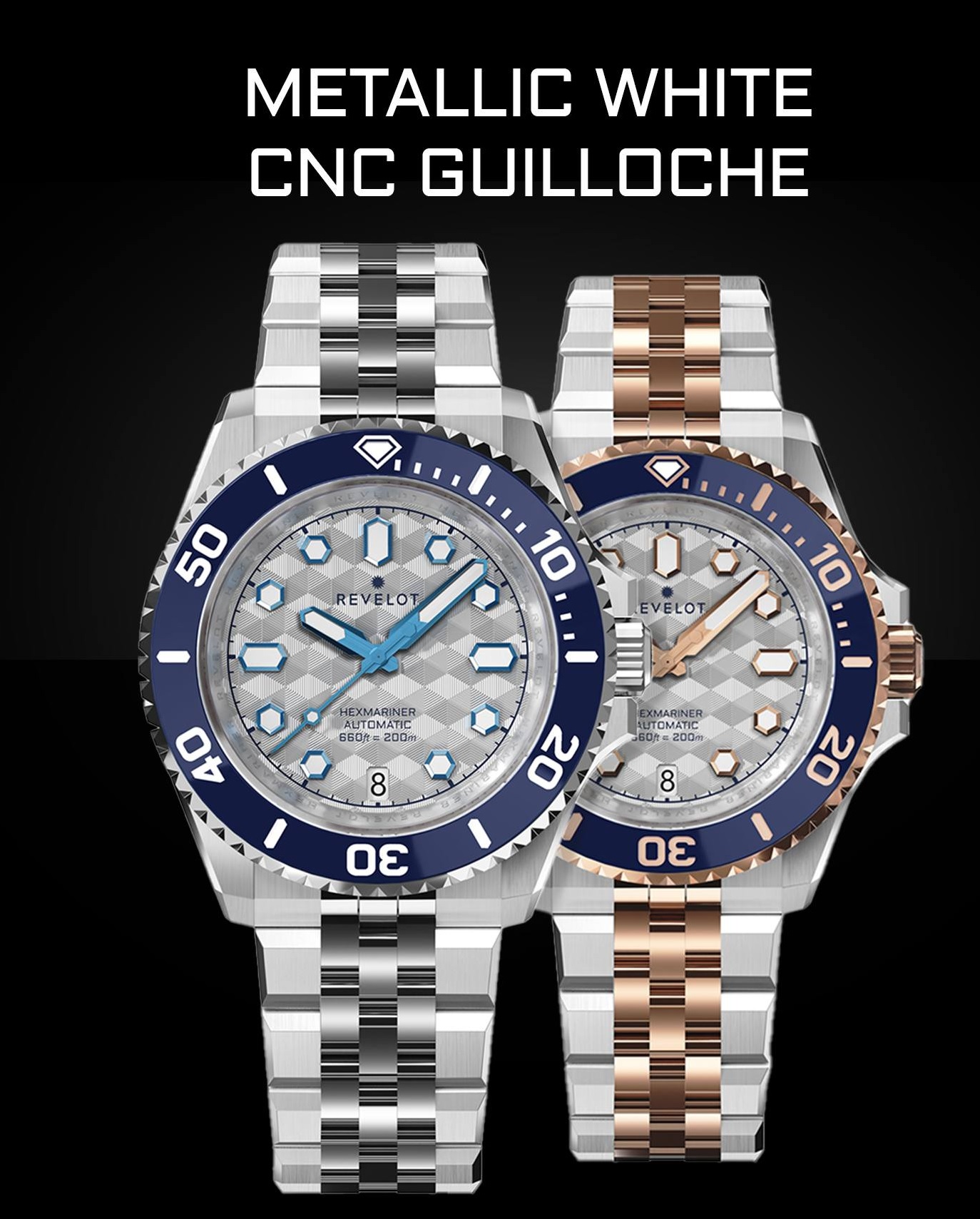 Hexmariner 42 Metallic White CNC Guilloche Bicolor