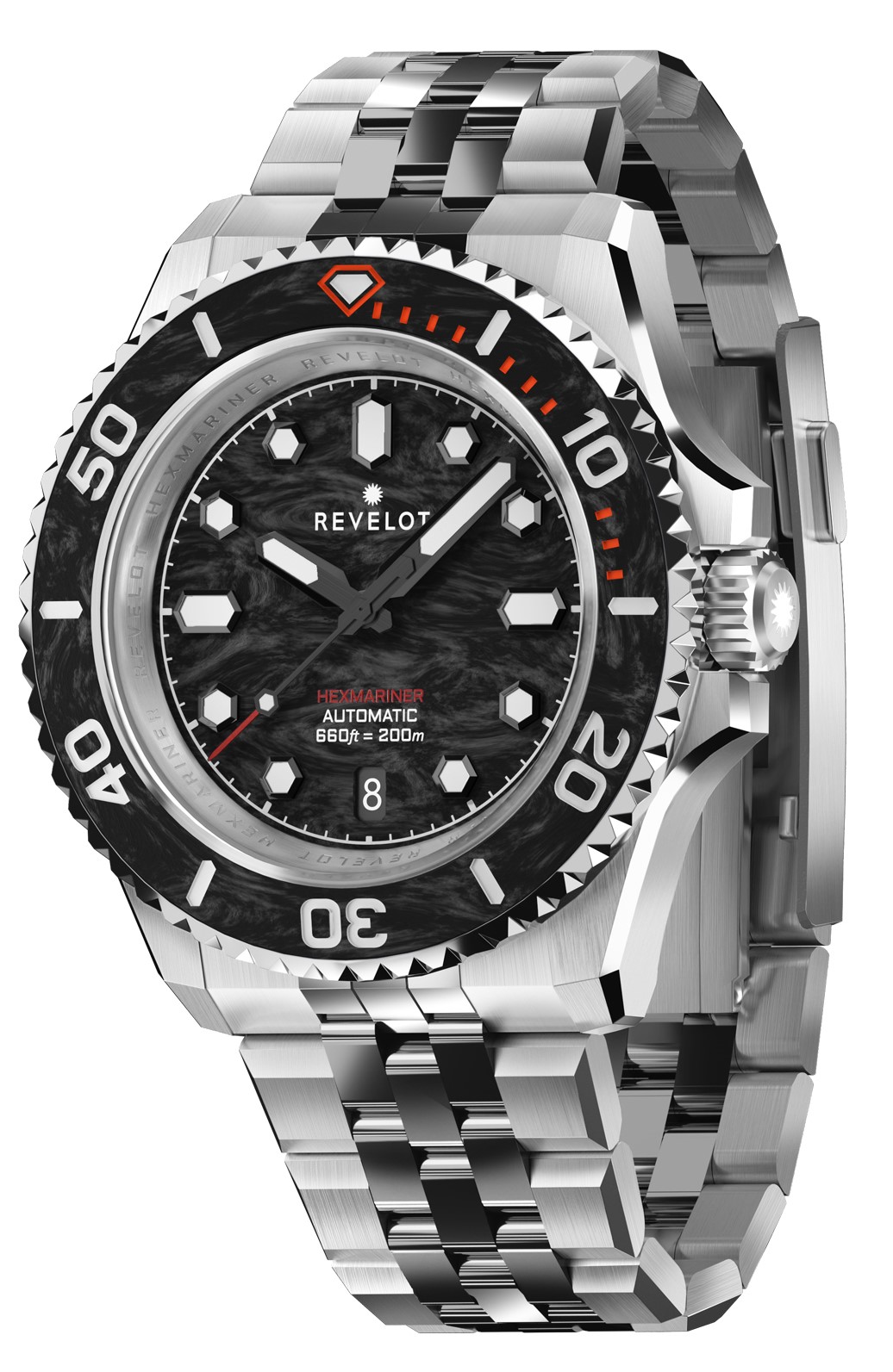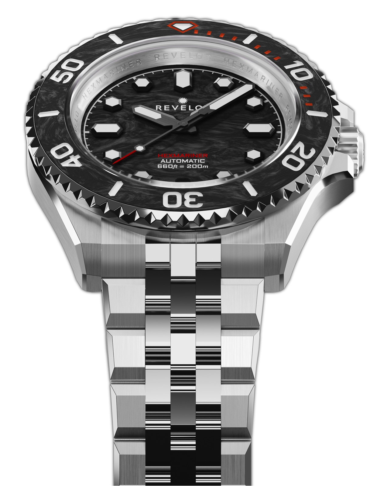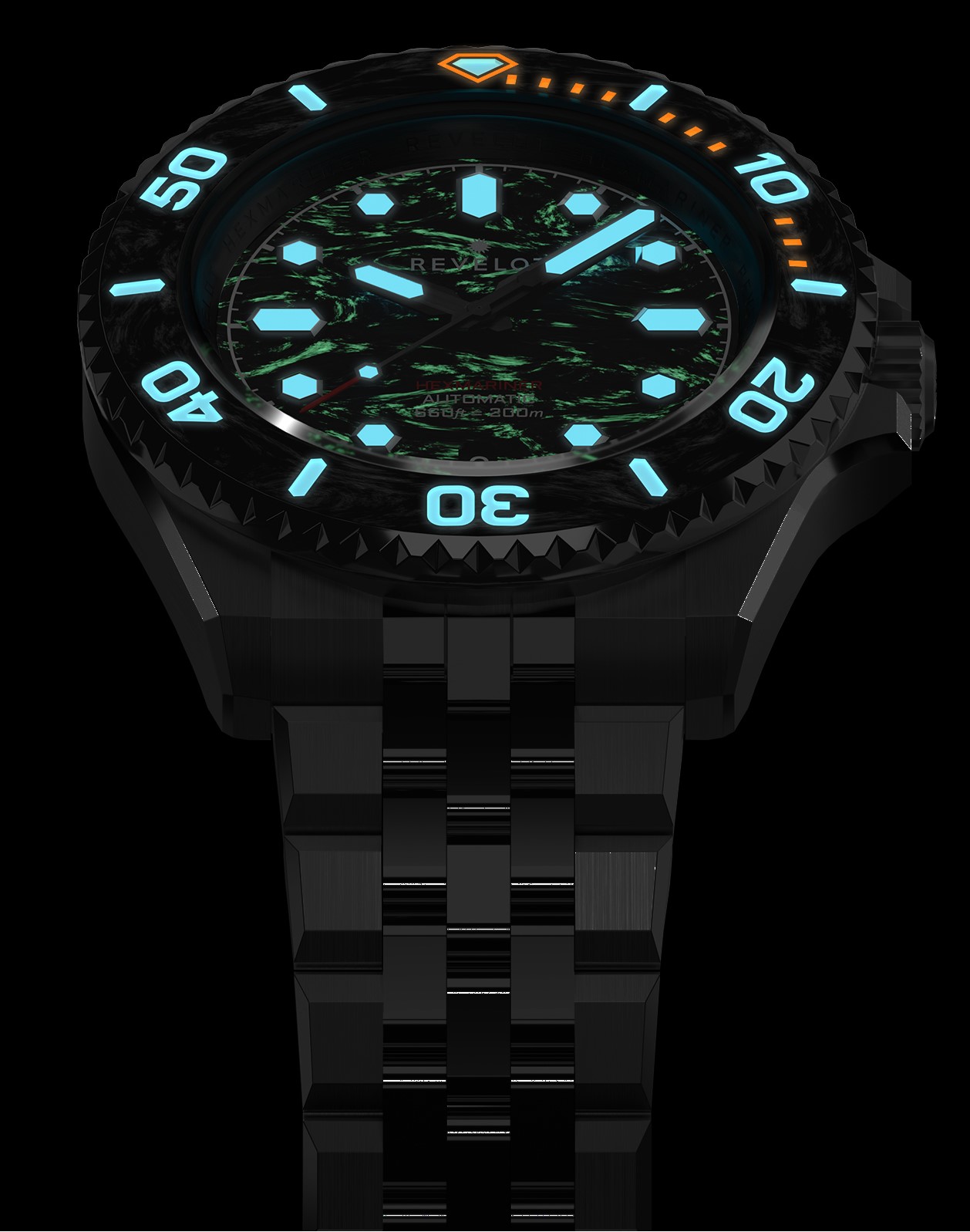 - Uni-directional ceramic/carbon fiber bezel with lume